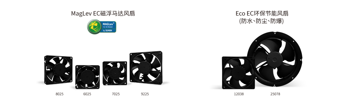 SUNON 交流風扇系列具有風量穩定和長效散熱的特性,從60mm~250mm風扇產品廣泛應用于工業設備、商業設備、冷凍冷藏、醫療設備等。近年來在節能產品發展趨勢下,也發展一系列ECO-EC風扇,采用高效馬達搭配各種控制功能,以達到降低能源消耗的設計需求。并可依客戶系統使用于各種嚴苛環境,提供各種防護等級IP21~IP68防水防塵與ATEX 防爆防護。我們不僅提供專業的產品服務以保障產品長效使用、安全可靠性,同時提供高質量和高效率的最適化交流風扇解決方案以滿足各產業的散熱需求。
