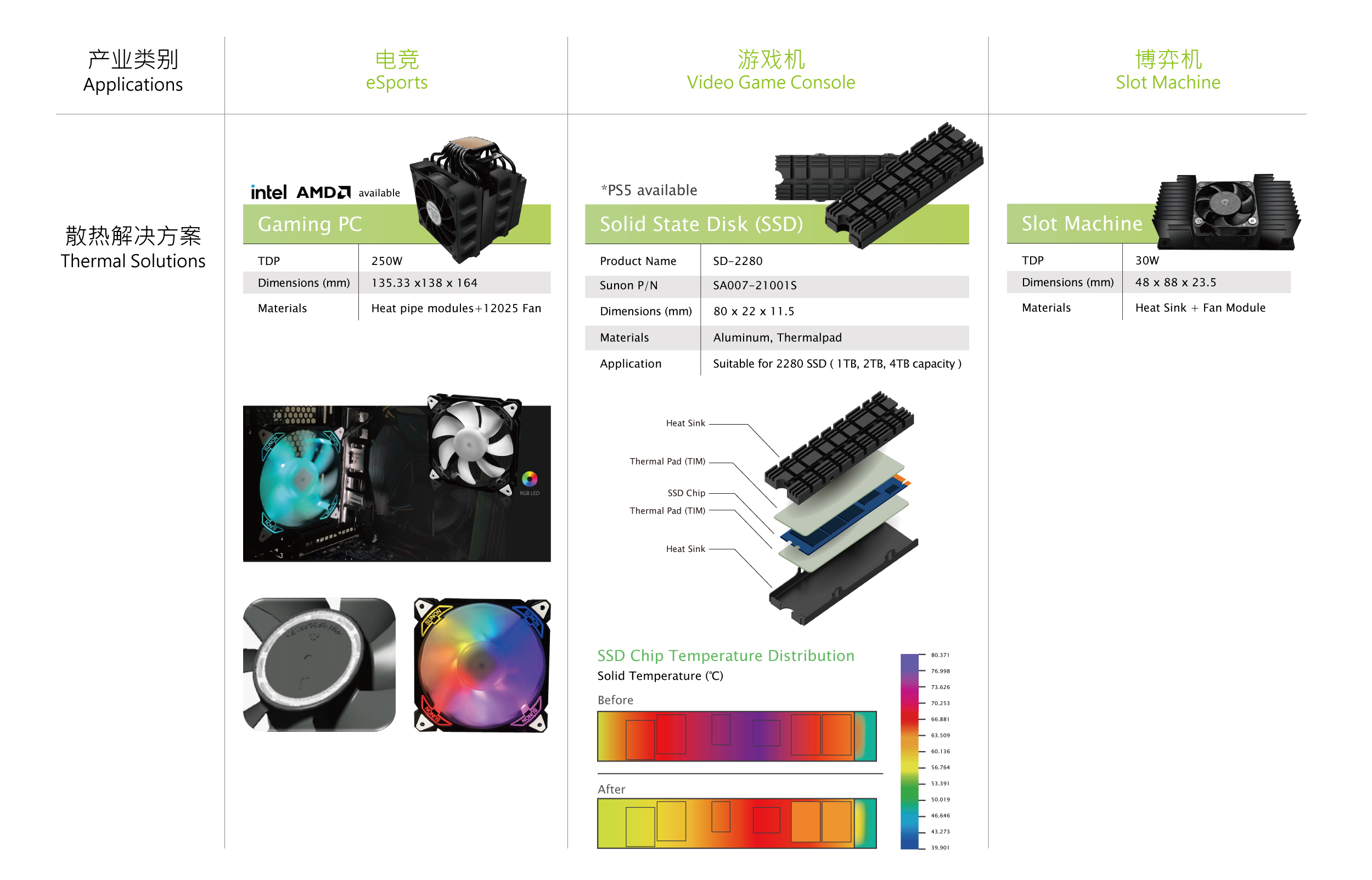 游戲機(jī)為宅在家的生活帶來無限樂趣,使用者為了儲存更多的高畫質(zhì)游戲內(nèi)容,可加裝SSD擴(kuò)充游戲內(nèi)容。游戲機(jī)SSD讀取效率會影響游戲的流暢度,因此SSD高速讀取存儲過程產(chǎn)生的高溫需要有效的散熱設(shè)計,才不會發(fā)生過度使用后硬盤過熱,引發(fā)游戲延遲、畫面讀取不順或游戲存檔失誤,大敗玩家玩興的悲劇,SUNON 游戲機(jī)SSD散熱解決方案能讓游戲數(shù)據(jù)讀取儲存過程系統(tǒng)溫度受到良好的控制,讓SSD效能最大降低延遲發(fā)生率,讓玩家能無憂無慮盡情地暢玩。
